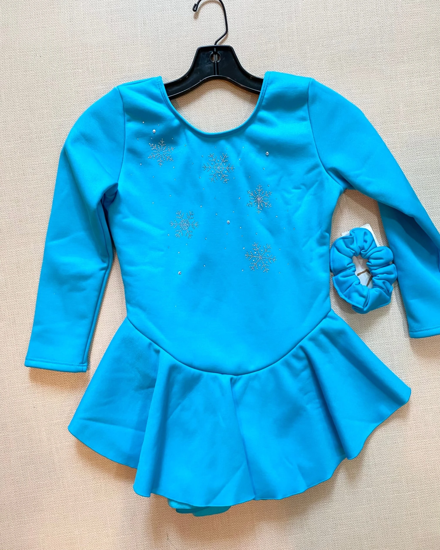 Turquoise polartec skating dress. Scoop front and back. Snowflake appliqué on the front.Â