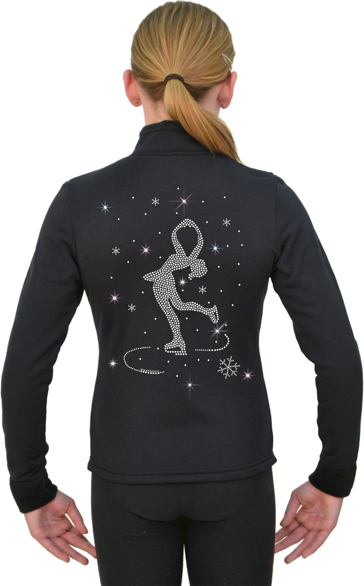 Black smooth faced fitted polar fleece skating jacket with crystal design on the back. Applique is approximately 11″ x 8″