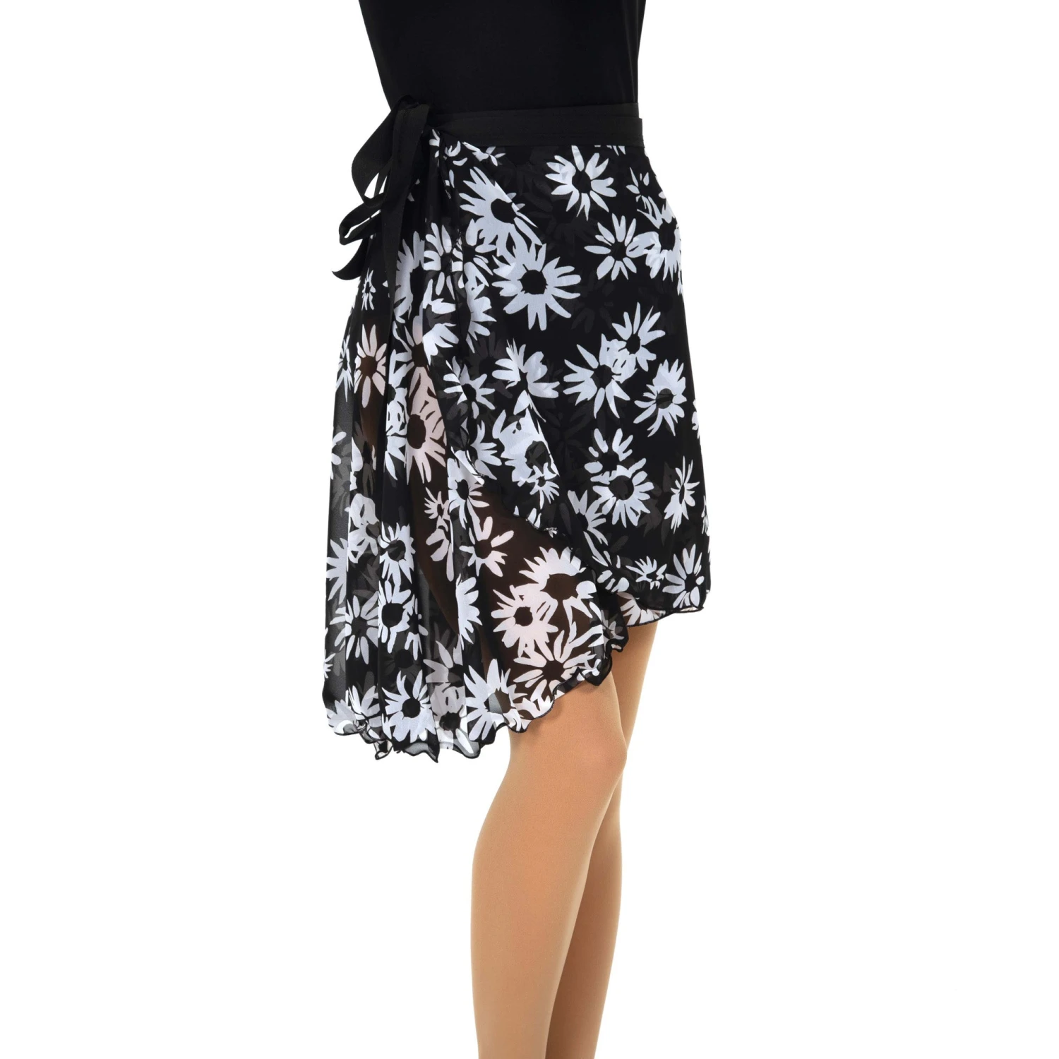 Dance length chiffon ice dance wrap skirt with daisy print.