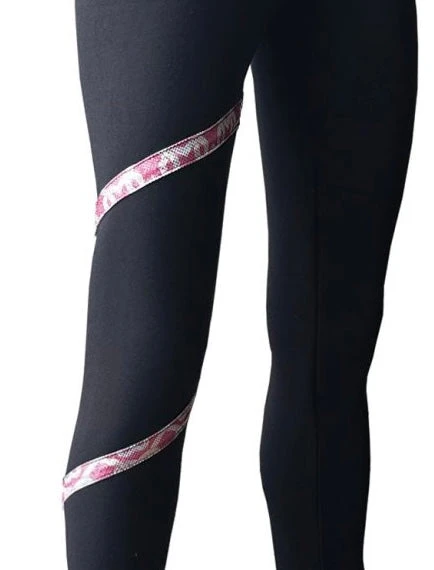 Cozy black fleece skating pants with a high waist fit, wide comfort waistband, under the heel skate fit. A swirl of holographic ribbon spiraling down one leg.