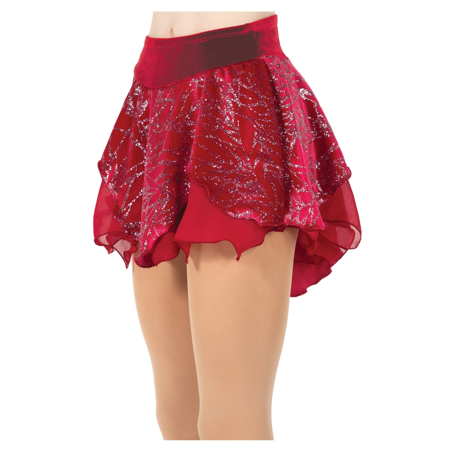 Velvet skating skirt with a petal hem. Glitter velvet over georgette, Matching brief. Elastic waist.