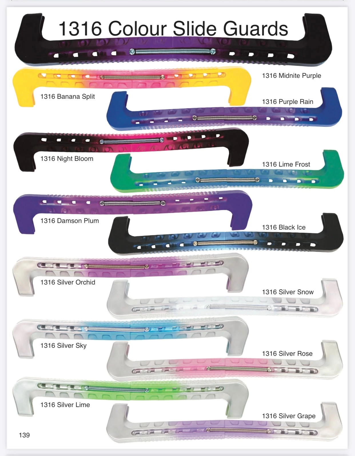 Deluxe two piece skate guards with springs in the middle. Cut to fit.