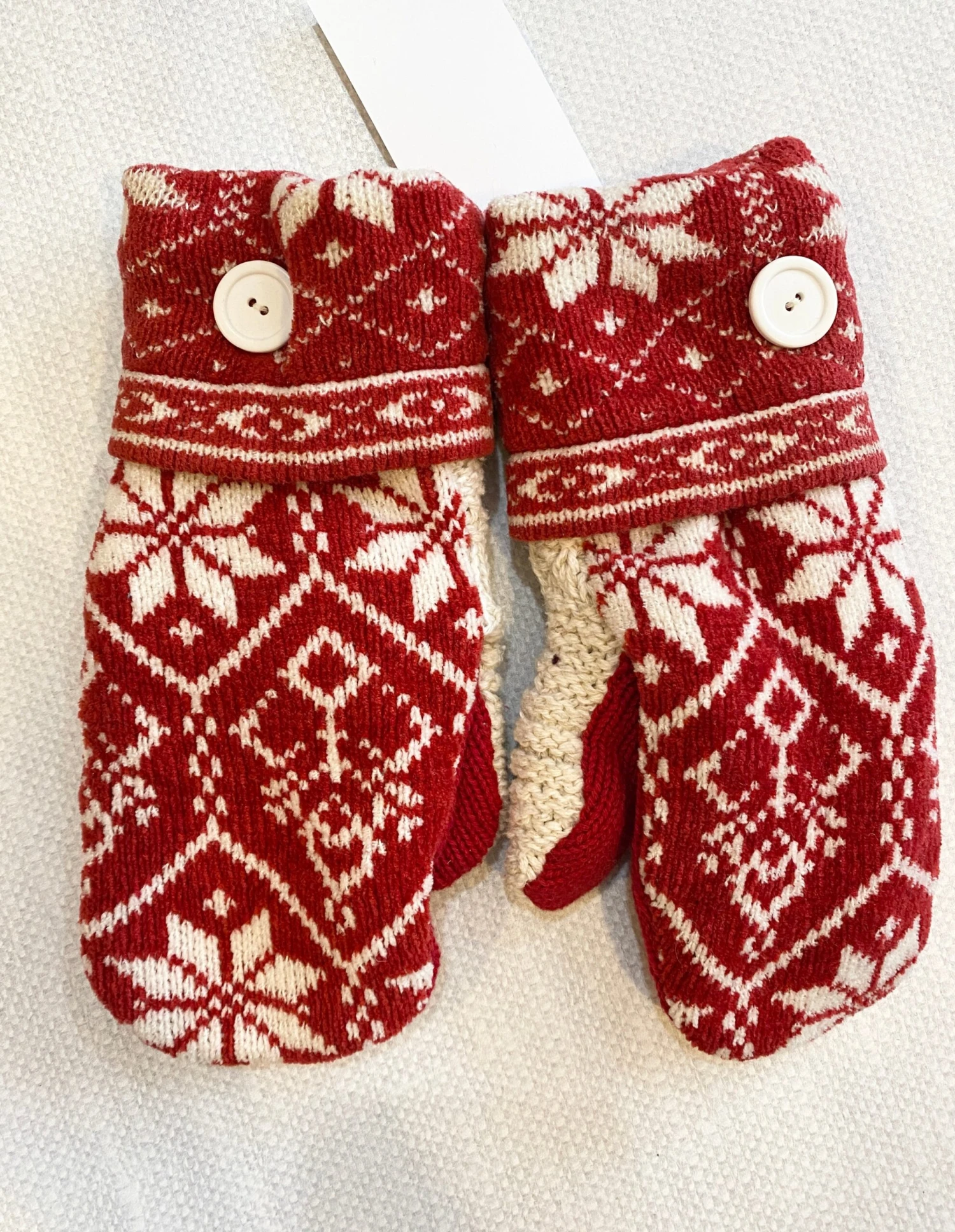Made Again Upcycled Sweater Mittens – Red Snowflakes