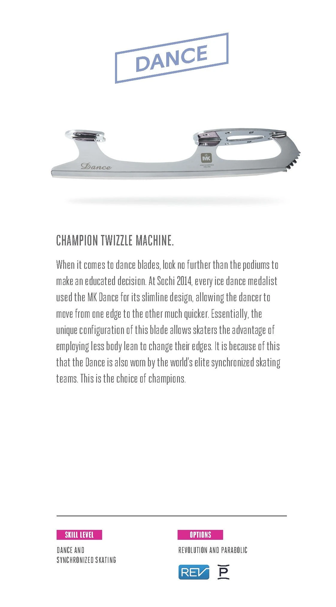 The most successful competition blade of the twentieth century. For over three decades the MK Dance has been worn by all Olympic, World and European Champions.Â