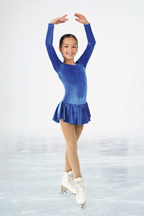 Printed glitter velvet skating dress with long sleeves. Hair tie included