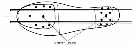 Center the frame from toe to heel. Attach screws to slotted holes first for easy adjustment, then attach remaining screws when properly positioned.