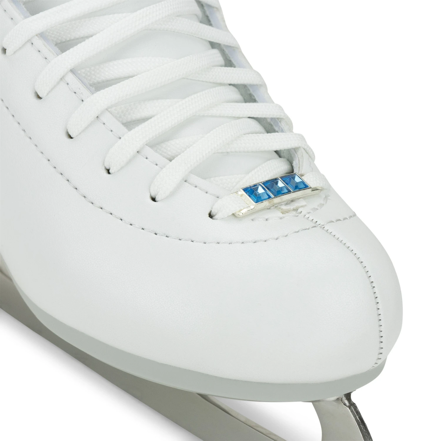 This skate set also offers a modern ergonomic toe fit for out-of-the-box comfort. The plush hand rolled collar provides relief to the Achilles tendon and a flex notch design facilitates proper knee and ankle bend. Beyond the technical features, each skate is adorned with faux crystals in the backstay and a decorative gem lace bar for added sparkle on the ice.