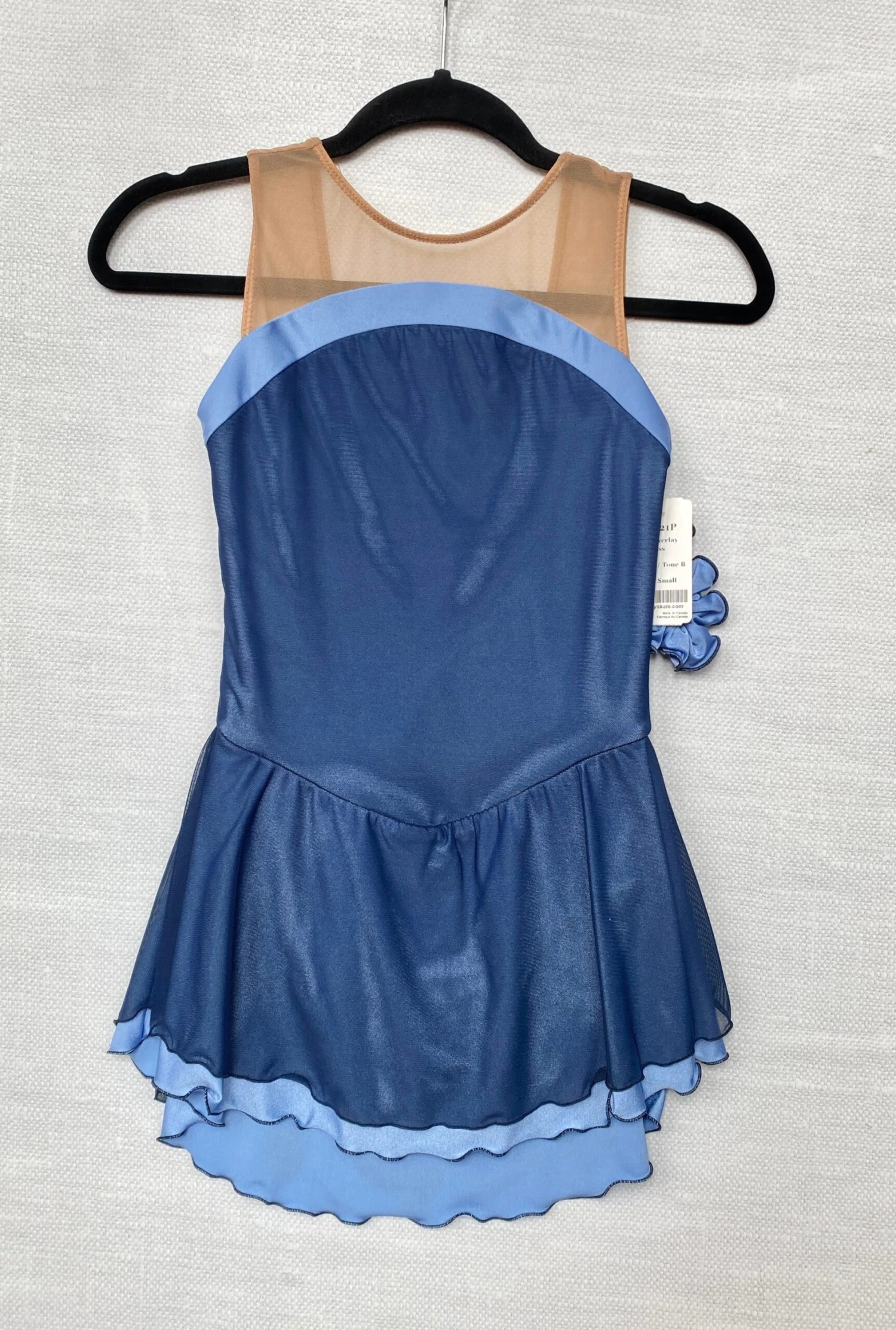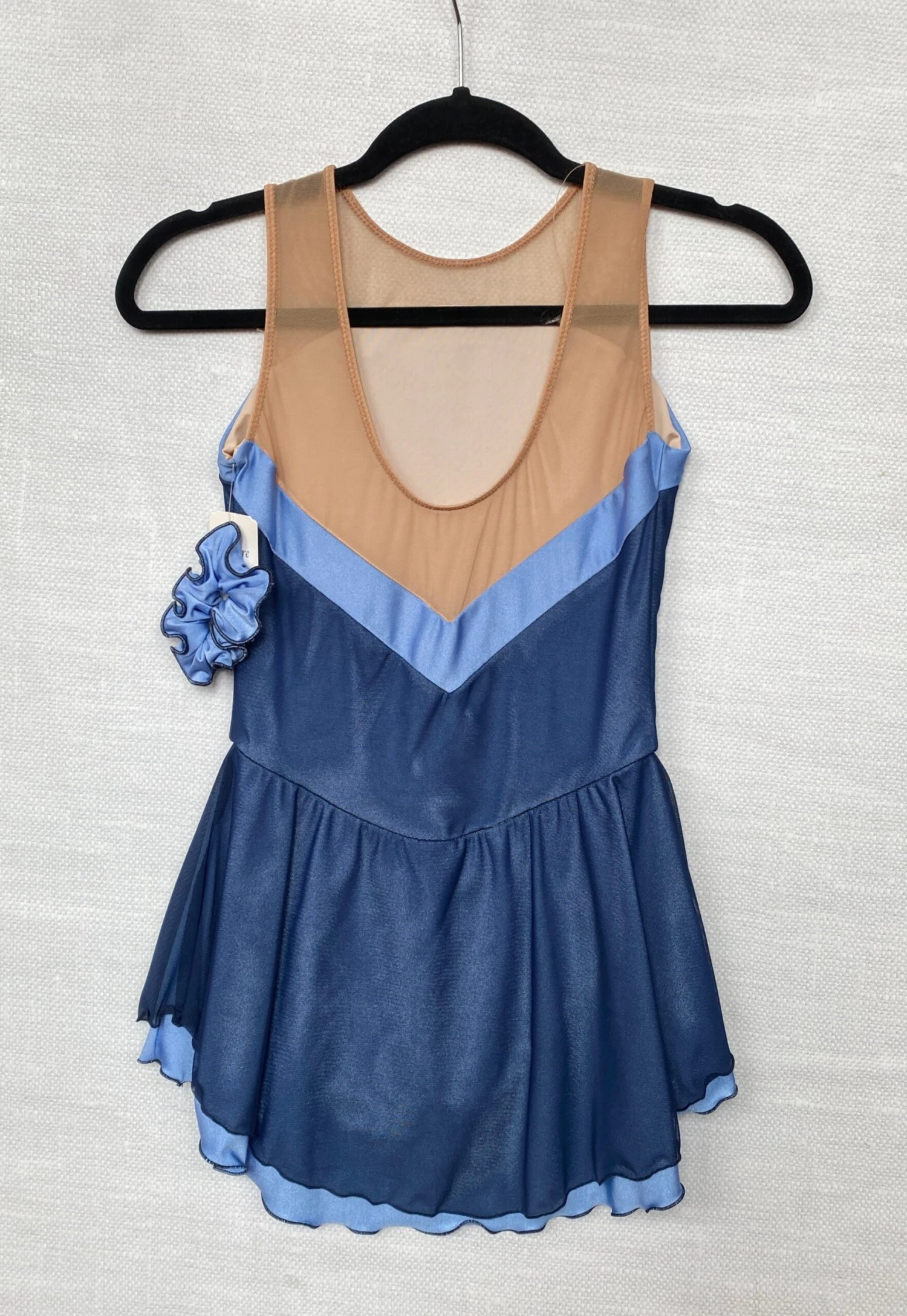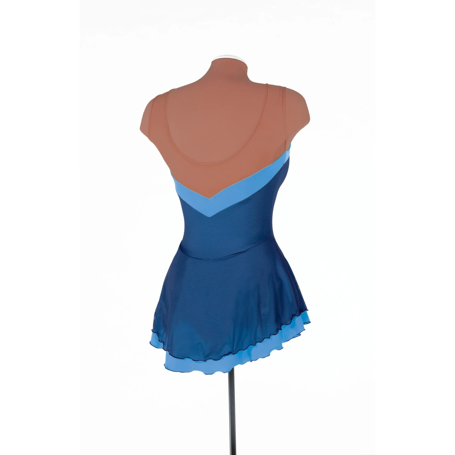 Lycra skating dress with contrasting mesh overlay. Strapless style front and shaped back, Double skirt. Unbeaded. Lined