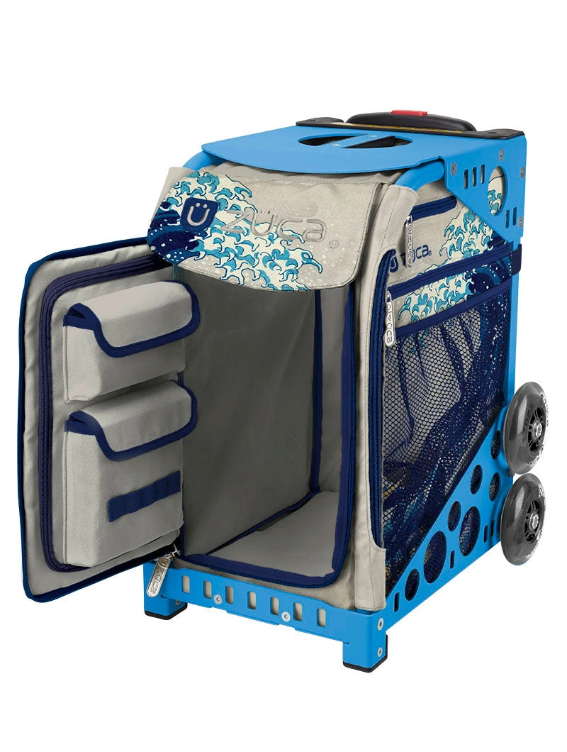A true all-around athlete, the patented design of the ZUCA Sport skate bag demands attention. Agile. Graceful. Absurdly versatile. And with a light, super-strong aluminum frame and oversized polyurethane wheels (they climb stairs), even school hallways and cracked sidewalks can’t slow its roll. Other sweet features? A removable hand washable bag. Wheels that flash. Tons of custom combos. And yes, a built-in seat. Ready? Game on.