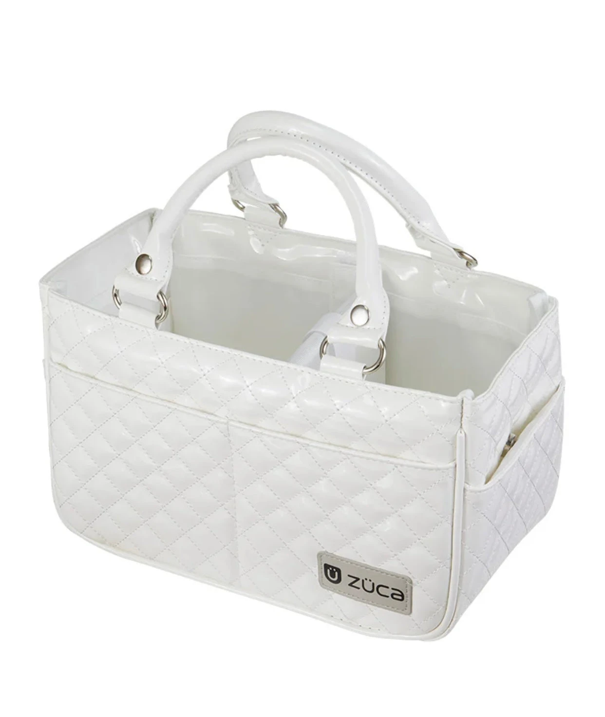Quilted tote to carry everything you need rink side. Fits over the handle of your ZUCA for easy transport. Adjustable dividers.Â
